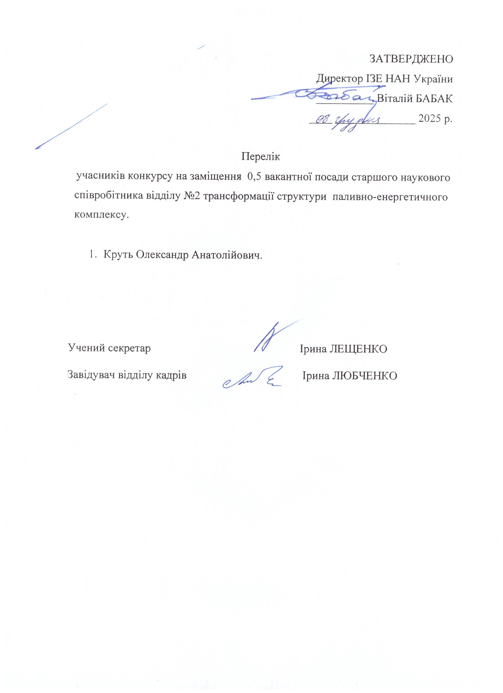 ПРОВІДНОГО НАУКОВОГО СПІВРОБІТНИКА ВІДДІЛУ ПРОГНОЗУВАННЯ РОЗВИТКУ ЕЛЕКТРОЕНЕРГЕТИЧНОГО КОМПЛЕКСУ